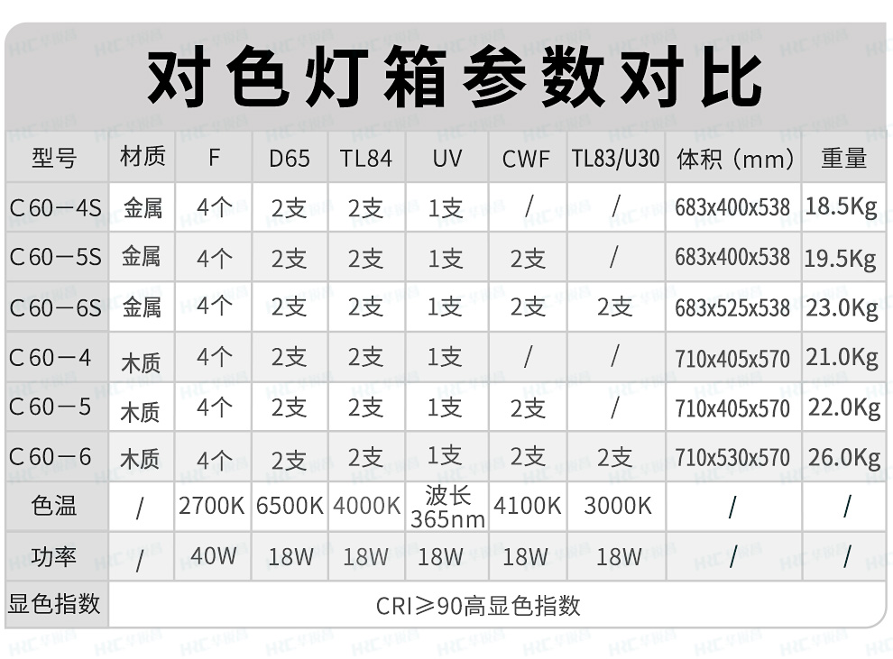 HRC華銳昌對(duì)色燈箱參數(shù)對(duì)比