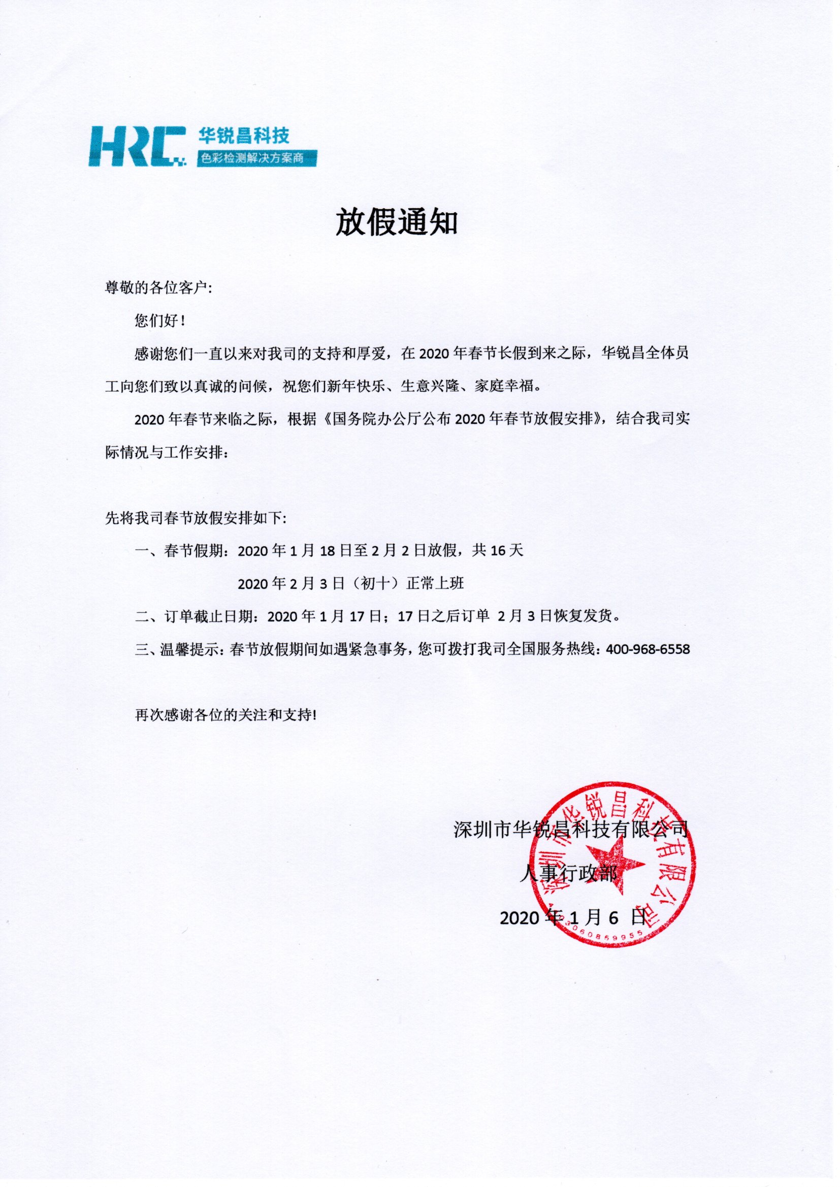 三、溫馨提示:春節(jié)放假期間如遇緊急事務(wù),您可撥打我司全國服務(wù)熱線:400-968-6558