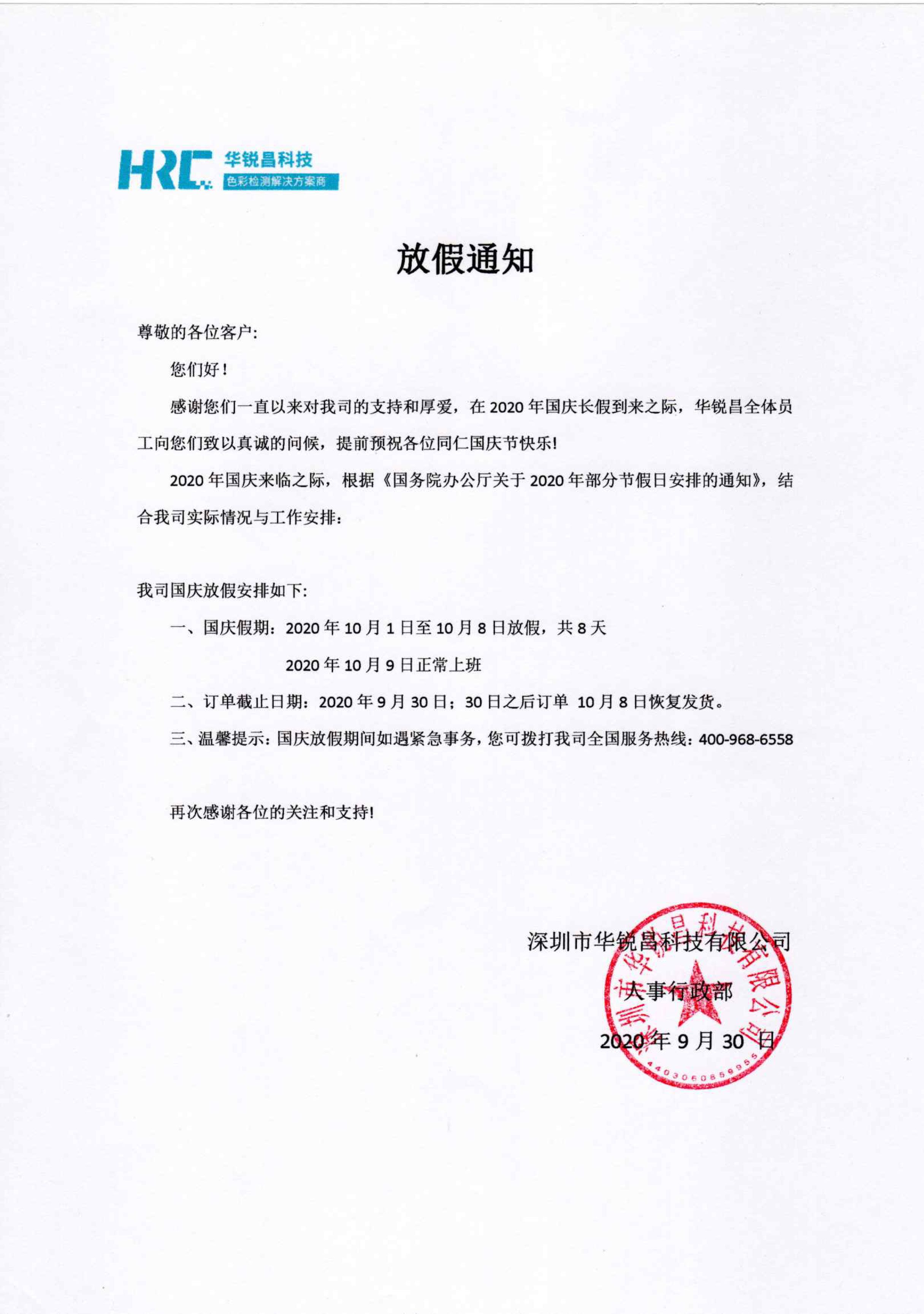 感謝您們一直以來對(duì)我司的支持和厚愛,在2020年國慶長假到來之際,華銳昌全體員工向您們致以真誠的問候,提前預(yù)祝各位同仁國慶節(jié)快樂!