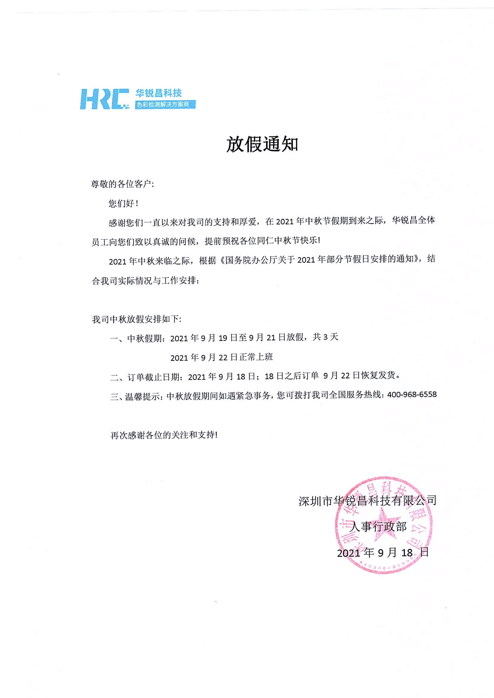 感謝您們一直以來對我司的支持和厚愛,在2021年中秋節(jié)假期到來之際,華銳昌全體員工向您們致以真誠的問候,提前預(yù)祝各位同仁中秋節(jié)快樂!