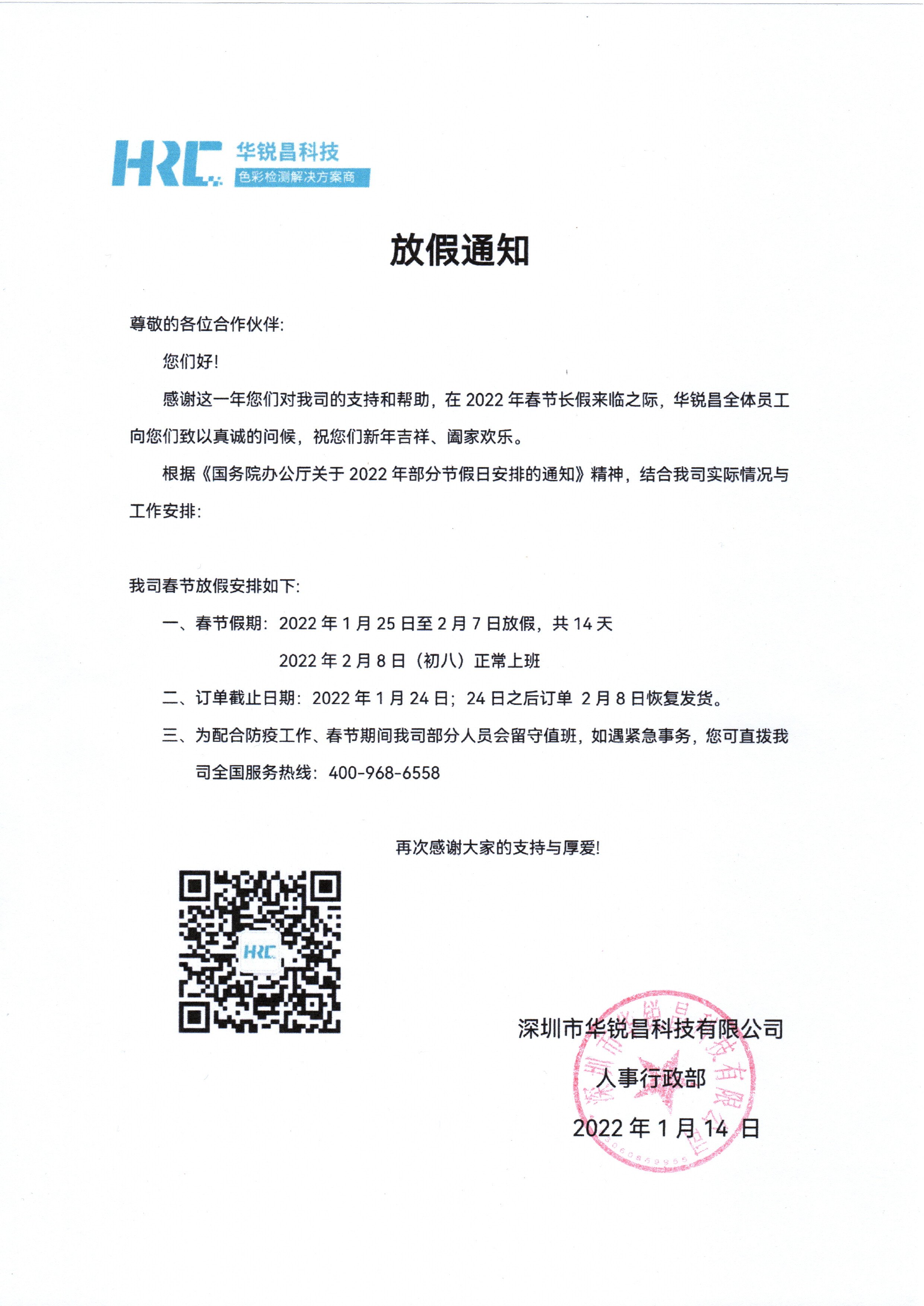 感謝這一年您們對我司的支持和幫助,在2022年春節(jié)長假來臨之際,華銳昌全體員工向您們致以真誠的問候,祝您們新年吉祥、闔家歡樂。