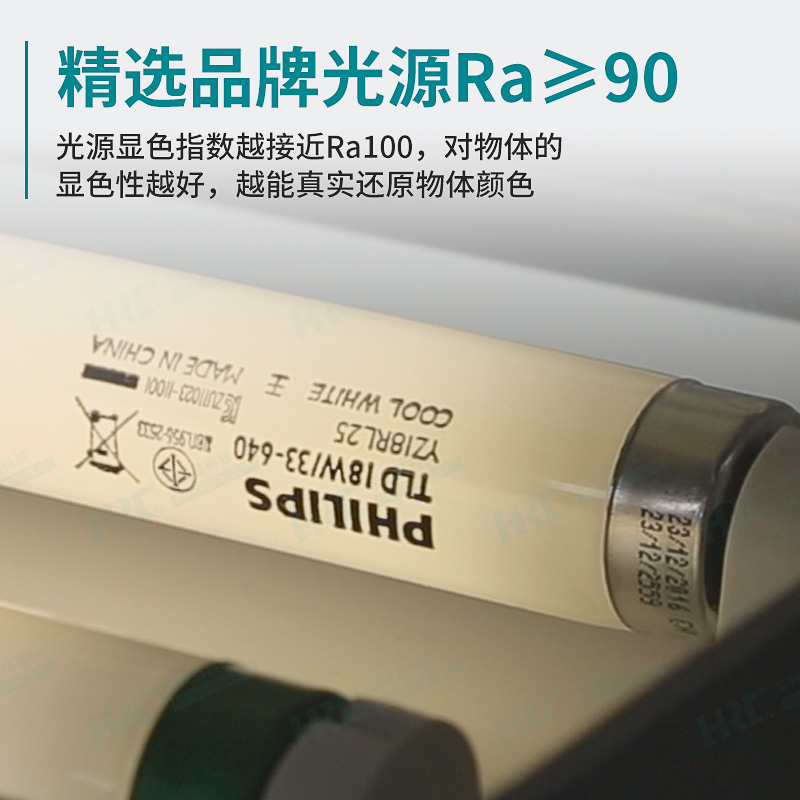 光源箱內(nèi)部構(gòu)造與普通熒光燈管并不相同,燈管的排列位置雖然對對色燈箱用的燈管排列位置并沒有特定的要求,但其分布的位置必需是在對色燈箱內(nèi)有均勻的光源,絕不可偏側(cè)某區(qū)域。