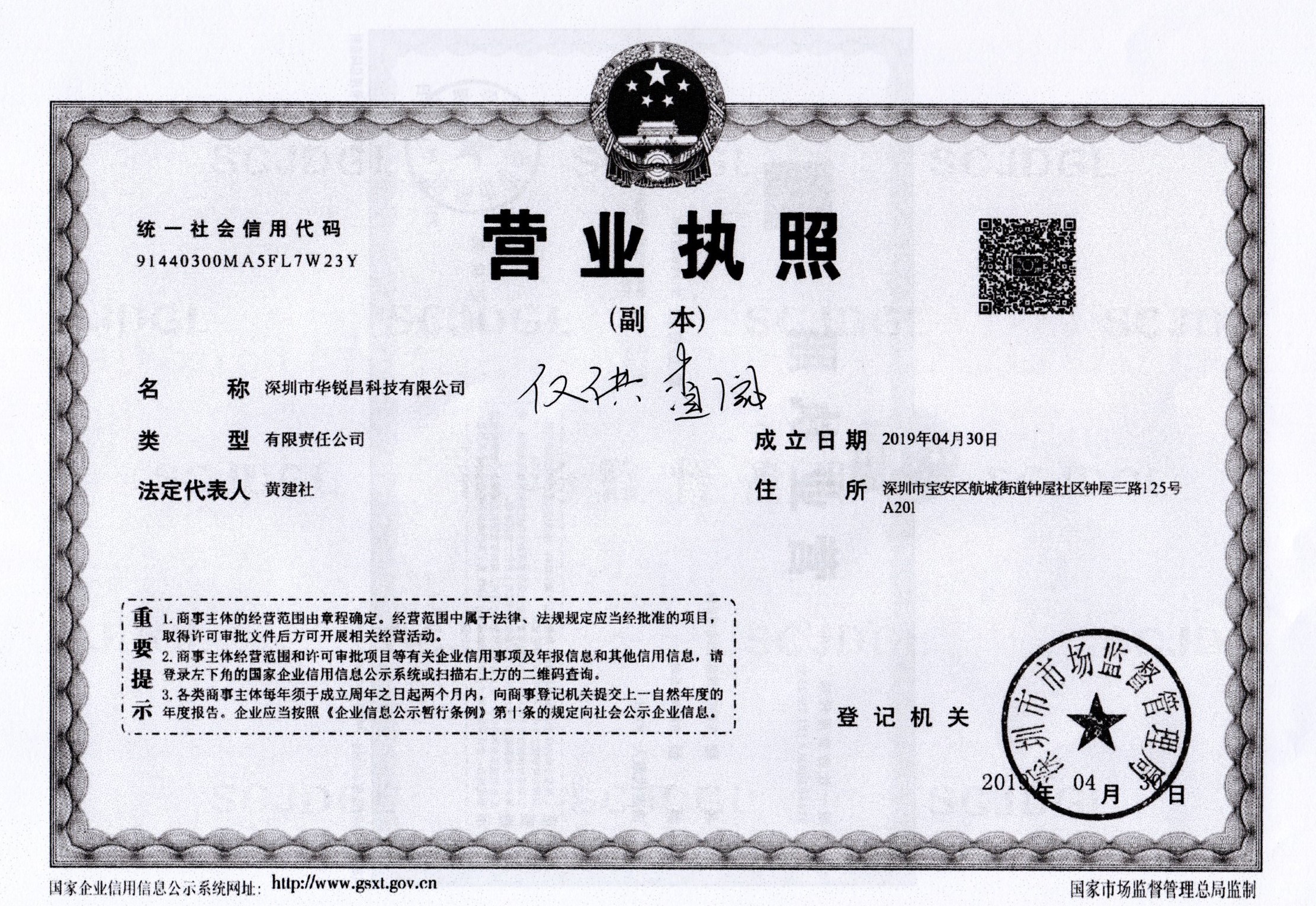 深圳市華銳昌科技有限公司營(yíng)業(yè)執(zhí)照